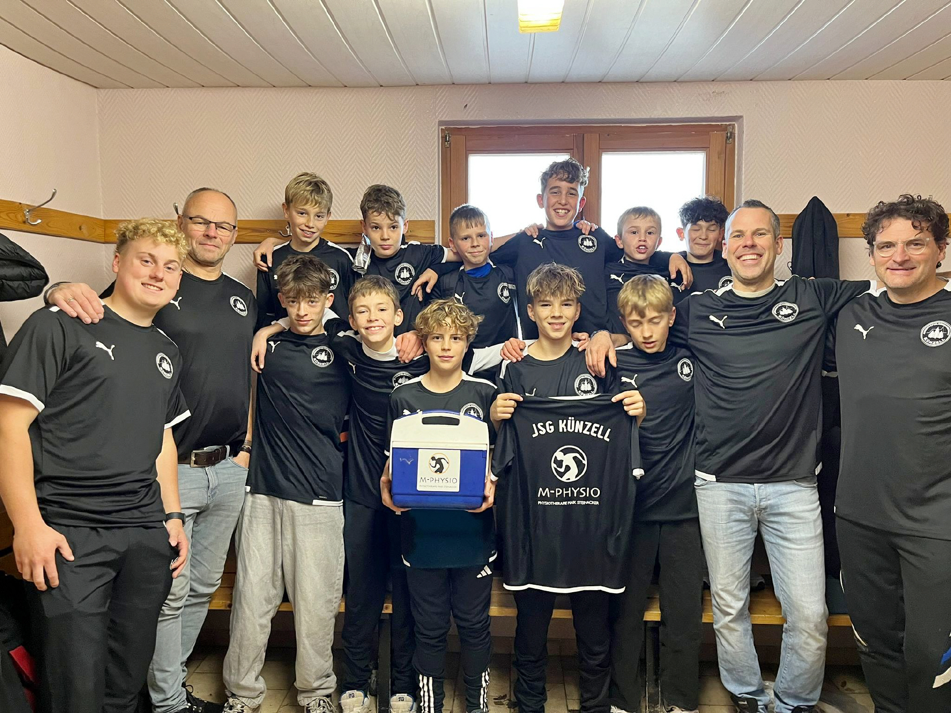 Die D1-Junioren freuen sich über neue Trainingsshirts für die laufende, bislang sehr erfolgreiche Saison 2025/26. Möglich gemacht hat dies Physiotherapeut Mike Steinacker mit eigener Praxis, Vater unseres Goalkeepers Sami. Er sorgt nicht nur dafür, dass die Jungs bei Bedarf vor, während und nach dem Spiel wieder fit werden, sondern hat sie nun auch noch sehr schick eingekleidet.
