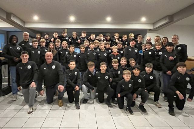 Ein starkes Team! Dank unserer Gönner und Sponsoren, dem Gasthof Rhönblick in Wissels und der Firma Schmitt Fine Art Goldankauf in Fulda, konnte unsere komplette D-Jugend mit dem Trainerstab mit neuen Trainingsjacken ausgestattet werden. Ganz nach dem früheren Slogan der Fulda Reifen „Schwarz, Breit, Stark“ geht es jetzt auf Torejagd! Herzlichen Dank für die Unterstützung unserer Teams an beide Sponsoren! (ps)