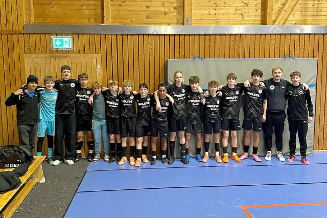 Gelungener Start ins neue Jahr mit zweiten Platz in Flieden! Am letzten Samstagnachmittag nahmen die C1-Junioren der JSG Künzell am Hallenturnier der JSG Flieden/Schweben in der KSH Flieden teil. In der Vorrunde mit zwei Fünfergruppen setzte sich Künzell als Gruppenerster durch und erreichte mit 10 Punkten und 10:4 Toren verdient das Finale.